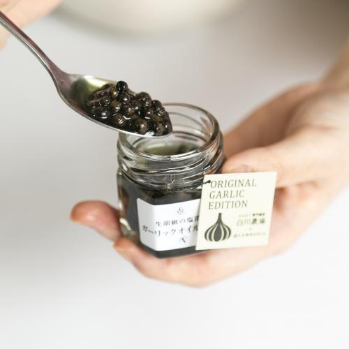 ■原材料名/黒胡椒(カンボジア)、グレープシードオイル(イタリア)、にんにく(香川県)食塩